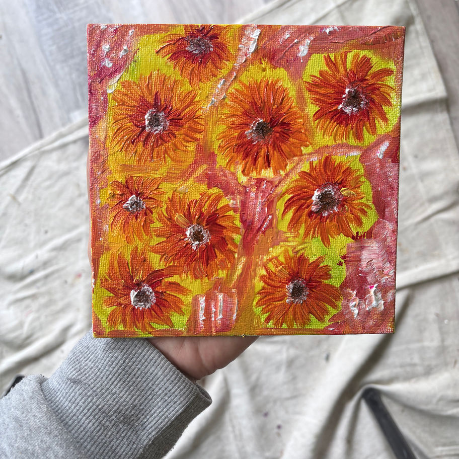 5x7 oil painting of daisys